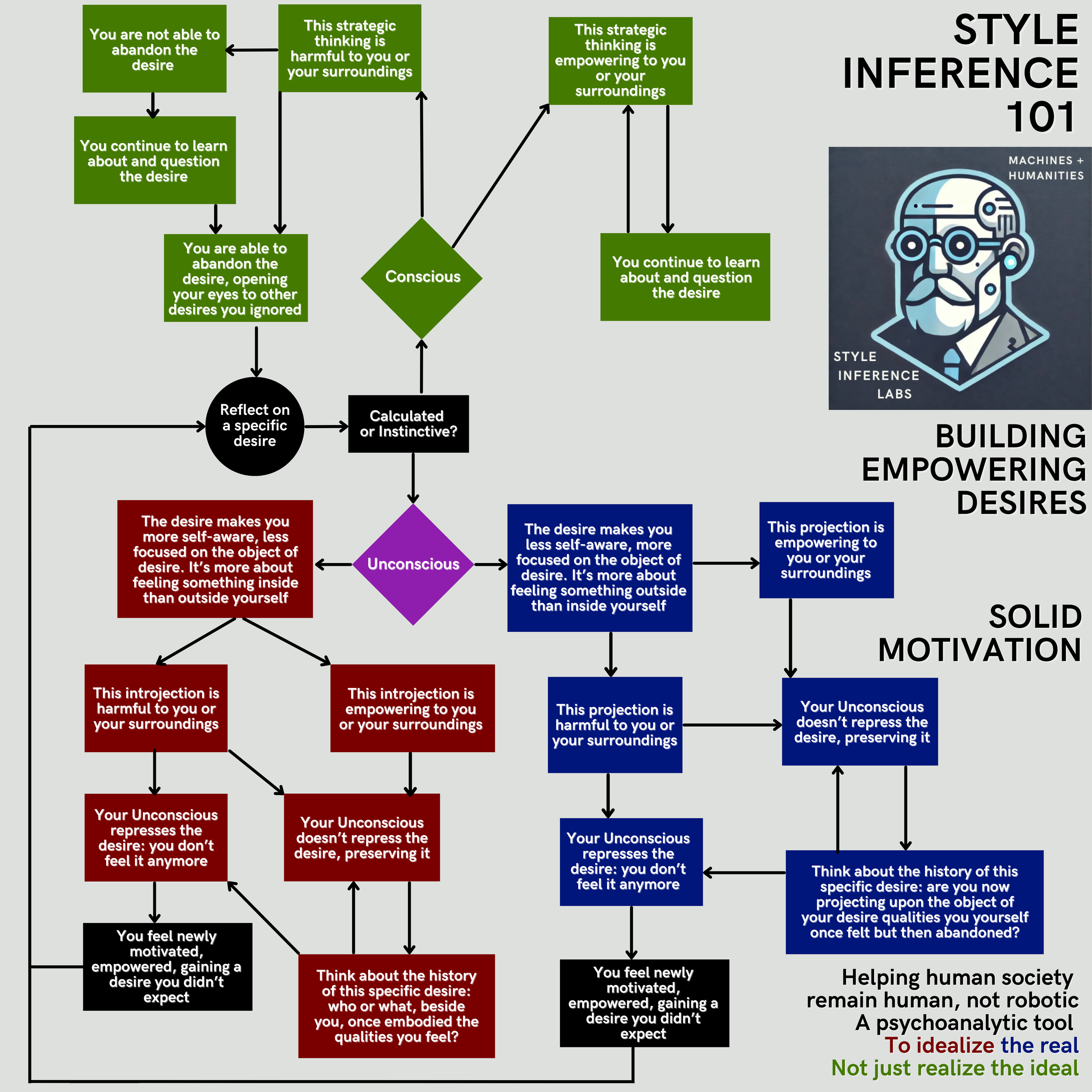 At Style Inference Labs, we understand that the type of work we are doing goes against the current. Why stop and reflect upon the past when the future seems so tempting? We understand we will not be able to convince everyone, let alone in the near future, about the need for style inference, psychoanalysis, or new ways to conceive desire, motivation, or the human.